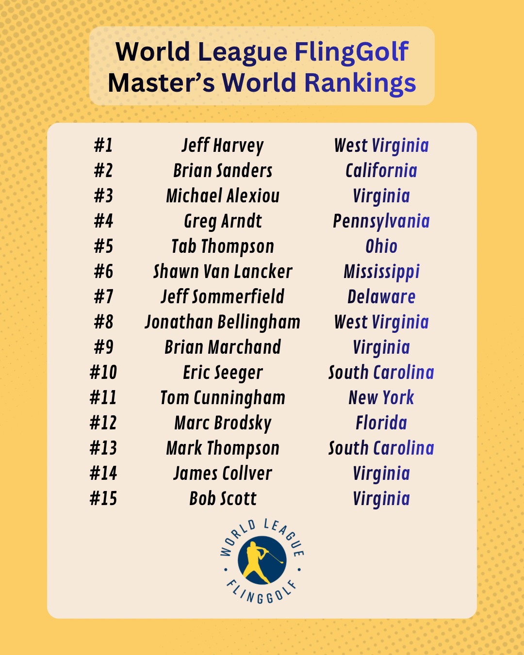 2024 New Swarm TourWorld League FlingGolf is the official governing body of FlingGolf®, establishing rules, certifying professionals and courses, and promoting events and leagues of all skill levels. Since its launch in 2014, a growing and diverse player community has played FlingGolf on well over 2,000 golf courses in every state in the USA and more than 35 countries worldwide. Our mission is to make FlingGolf the most widely played sport on golf courses across the globe.